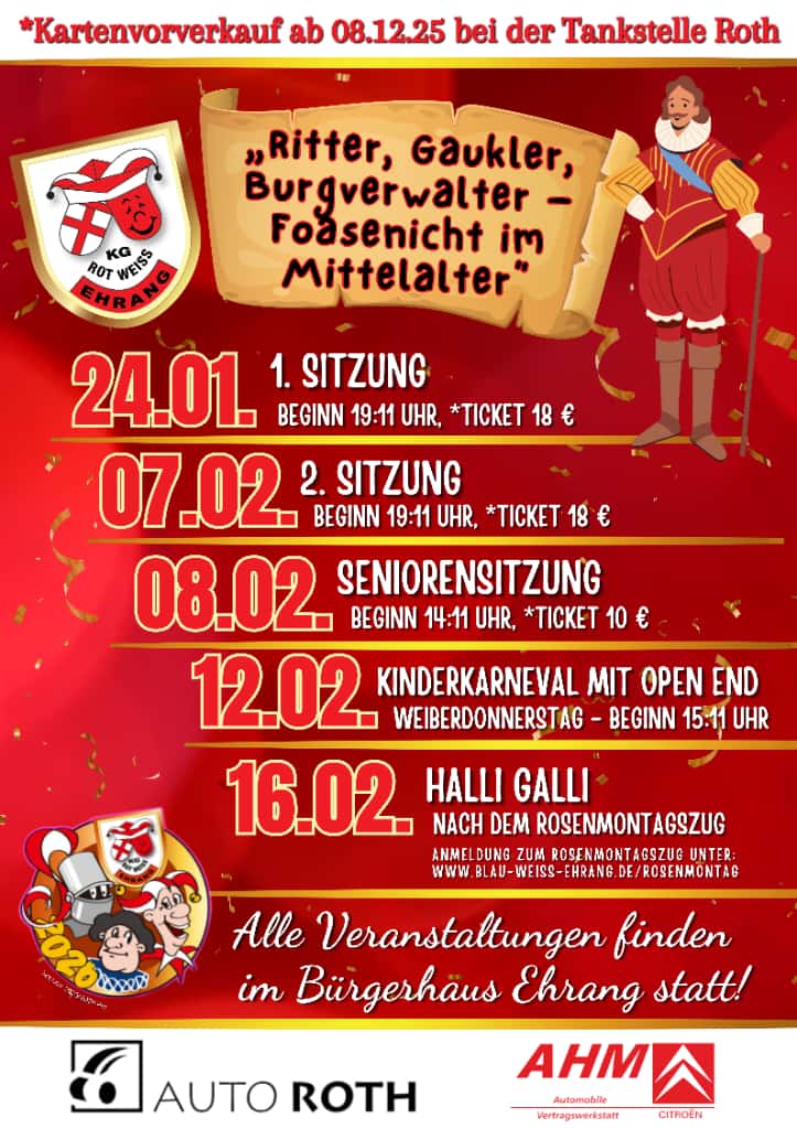 Die Karnevalsgesellschaft Rot-Weiss Ehrang ist ein Verein voller Leben, Leidenschaft und Tradition. Seit ihrer Gründung im Jahre 1952 hat sie eine lange Geschichte voller farbenfroher Feste, fröhlicher Zusammenkünfte und unvergesslicher Momente.