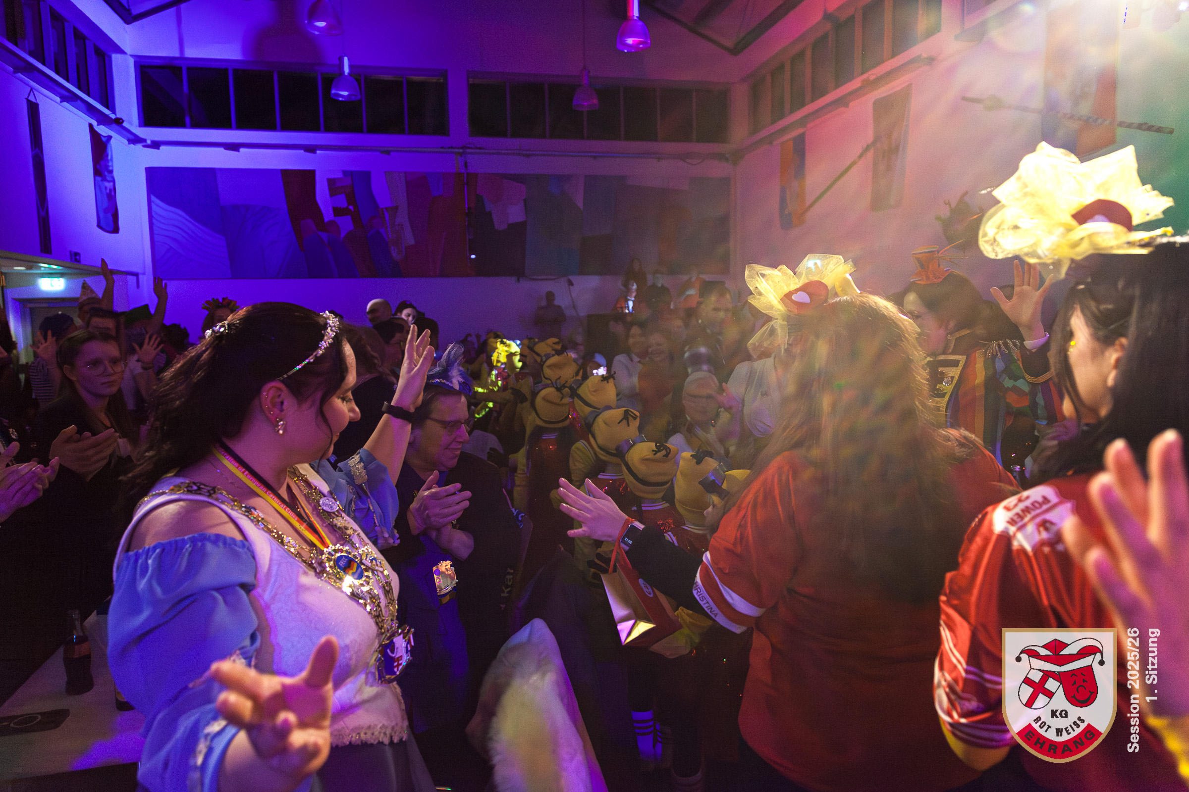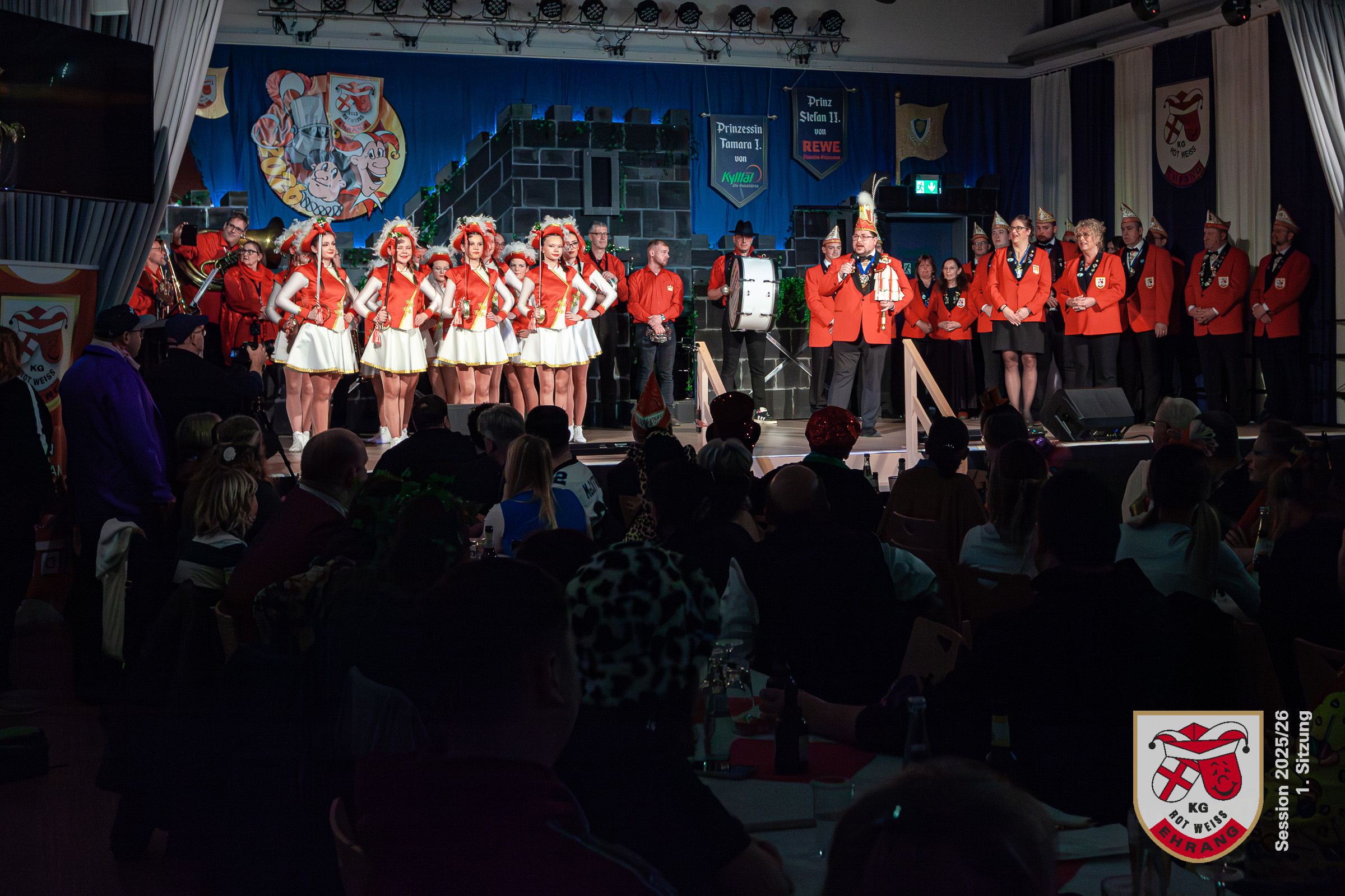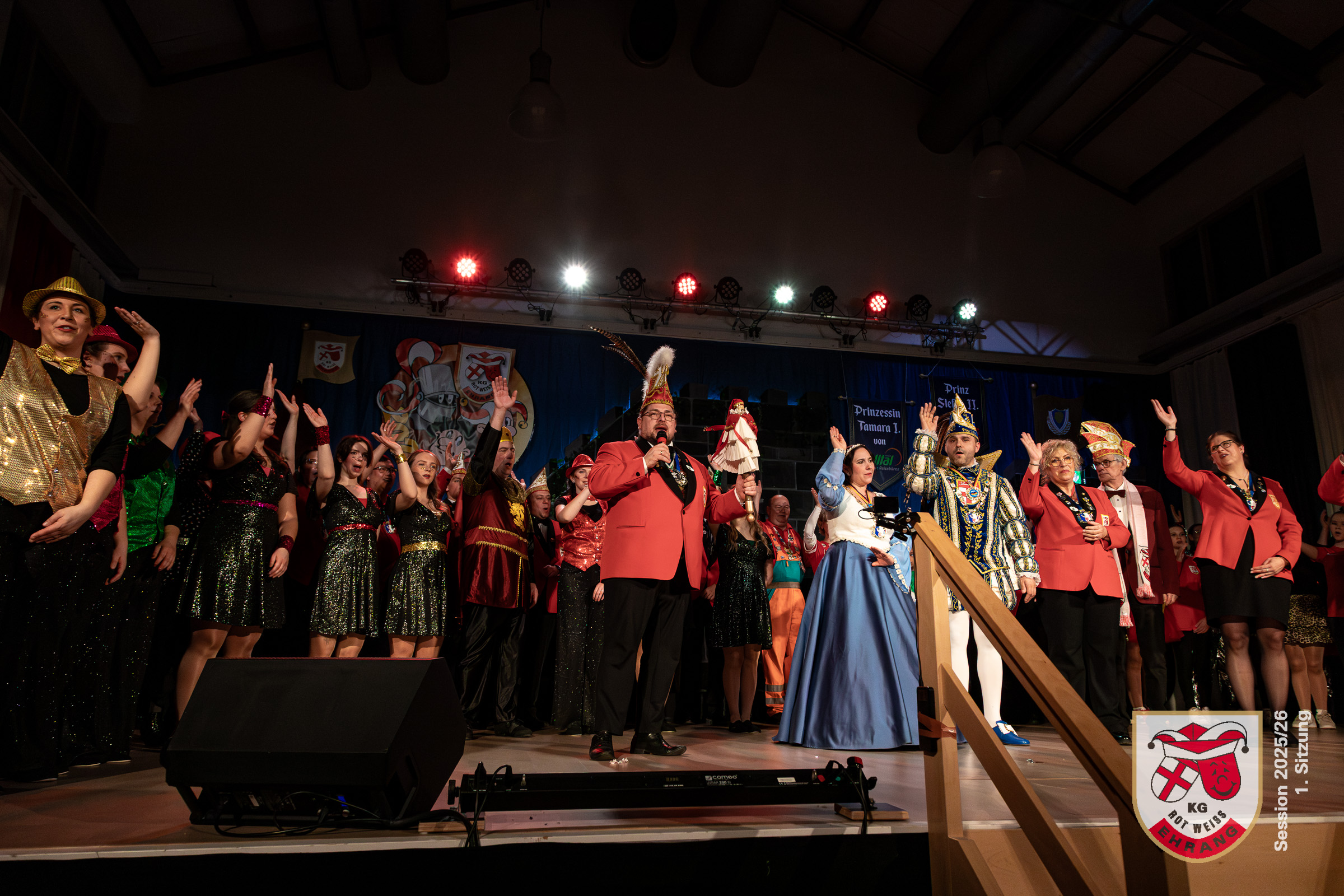 Am Samstag fand die erste Sitzung der KG Rot-Weiß Ehrang im komplett ausverkauften Bürgerhaus Trier‑Ehrang statt. Das Publikum erwartete ein abwechslungsreiches Programm, das im Laufe des Abends gleich mehrere Überraschungen bereithielt.