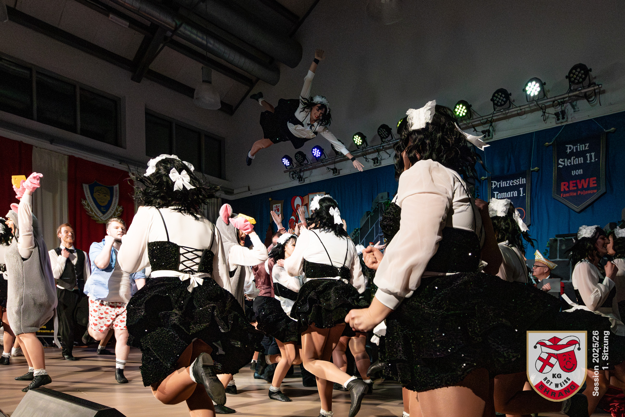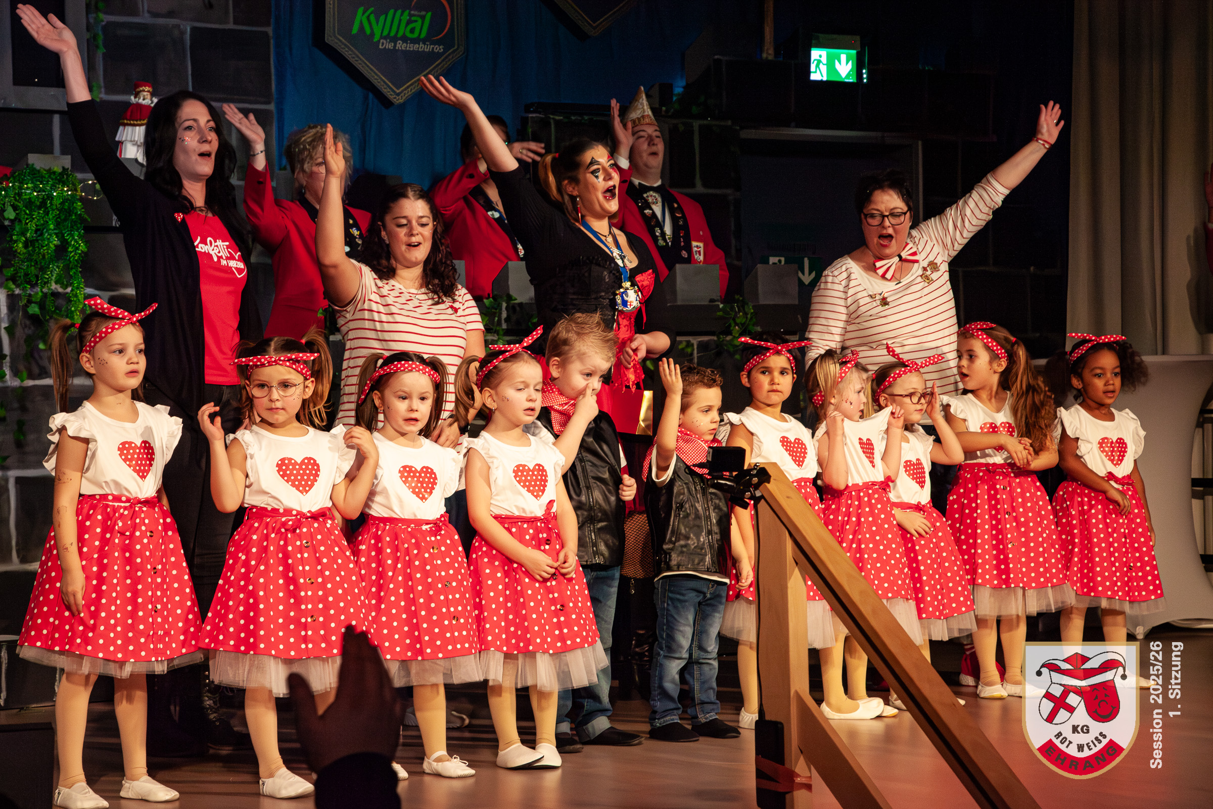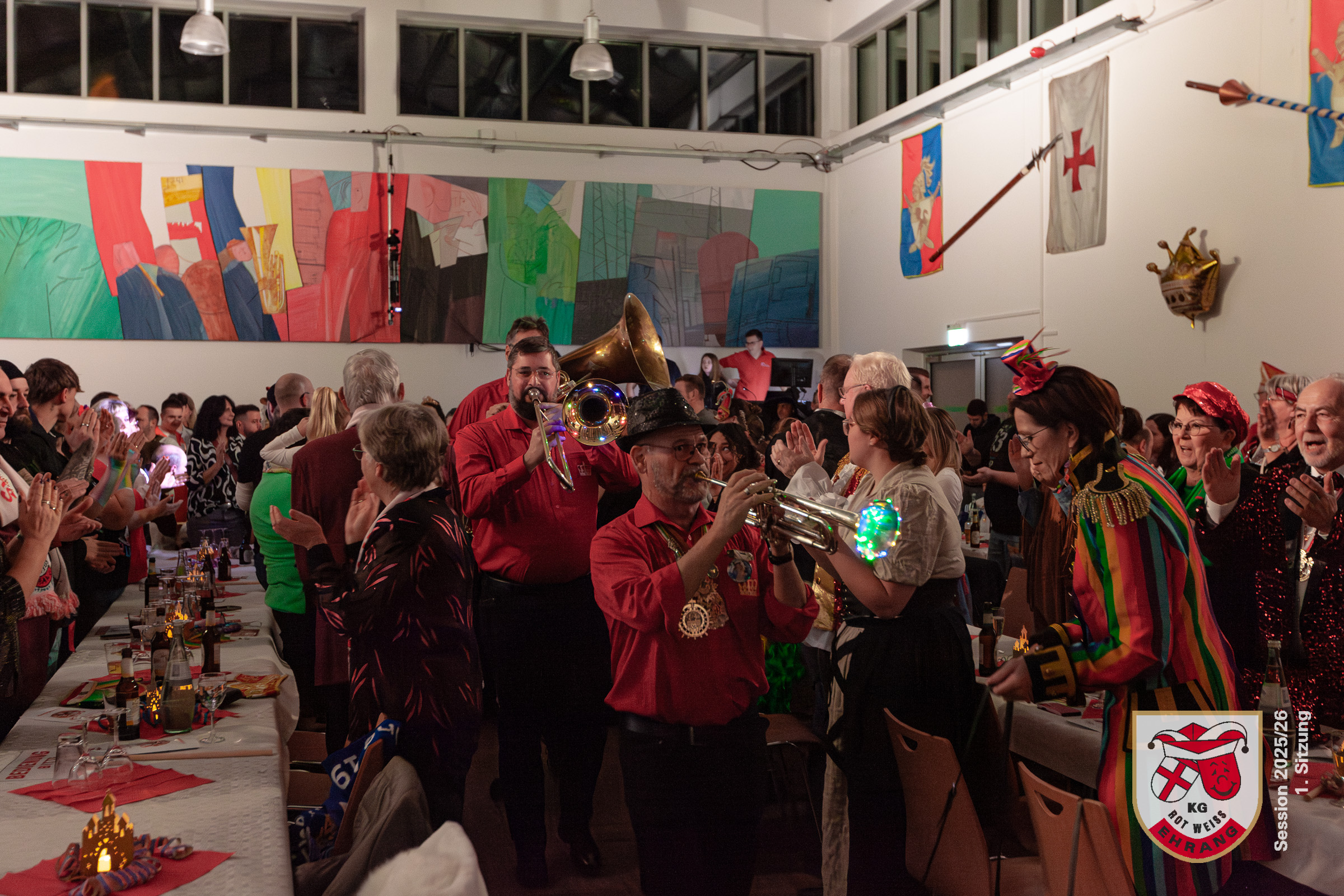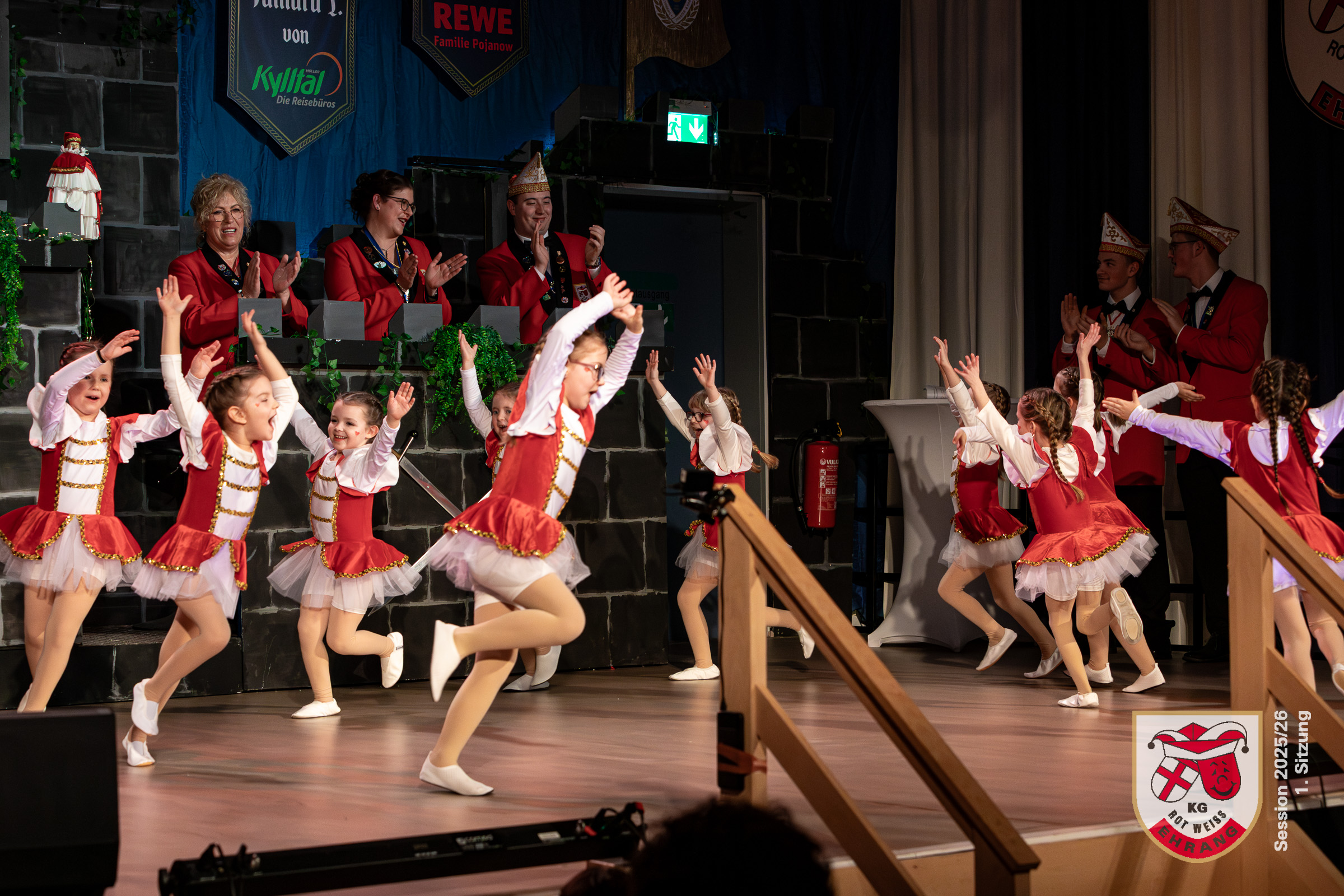 Am Samstag fand die erste Sitzung der KG Rot-Weiß Ehrang im komplett ausverkauften Bürgerhaus Trier‑Ehrang statt. Das Publikum erwartete ein abwechslungsreiches Programm, das im Laufe des Abends gleich mehrere Überraschungen bereithielt.