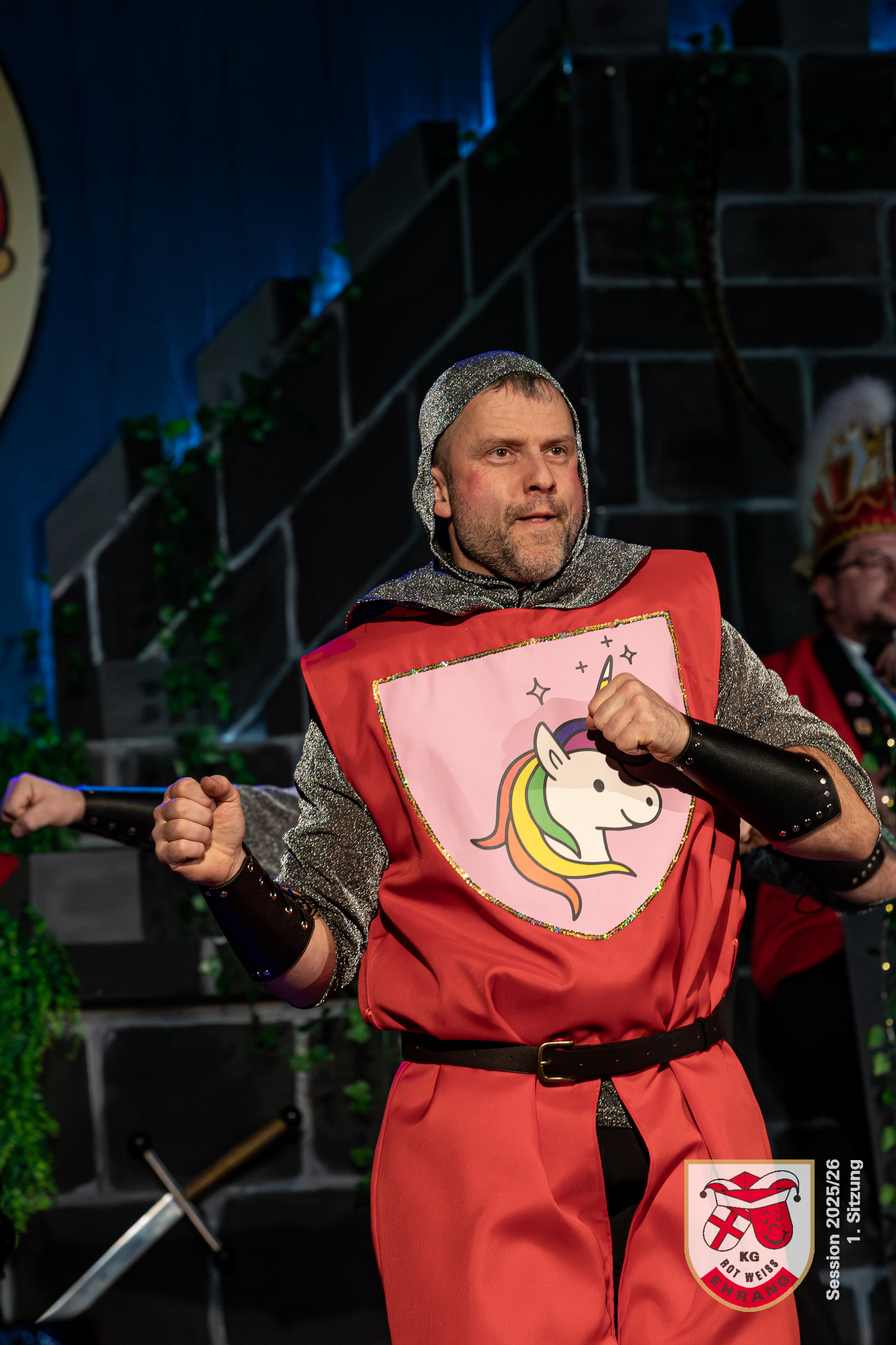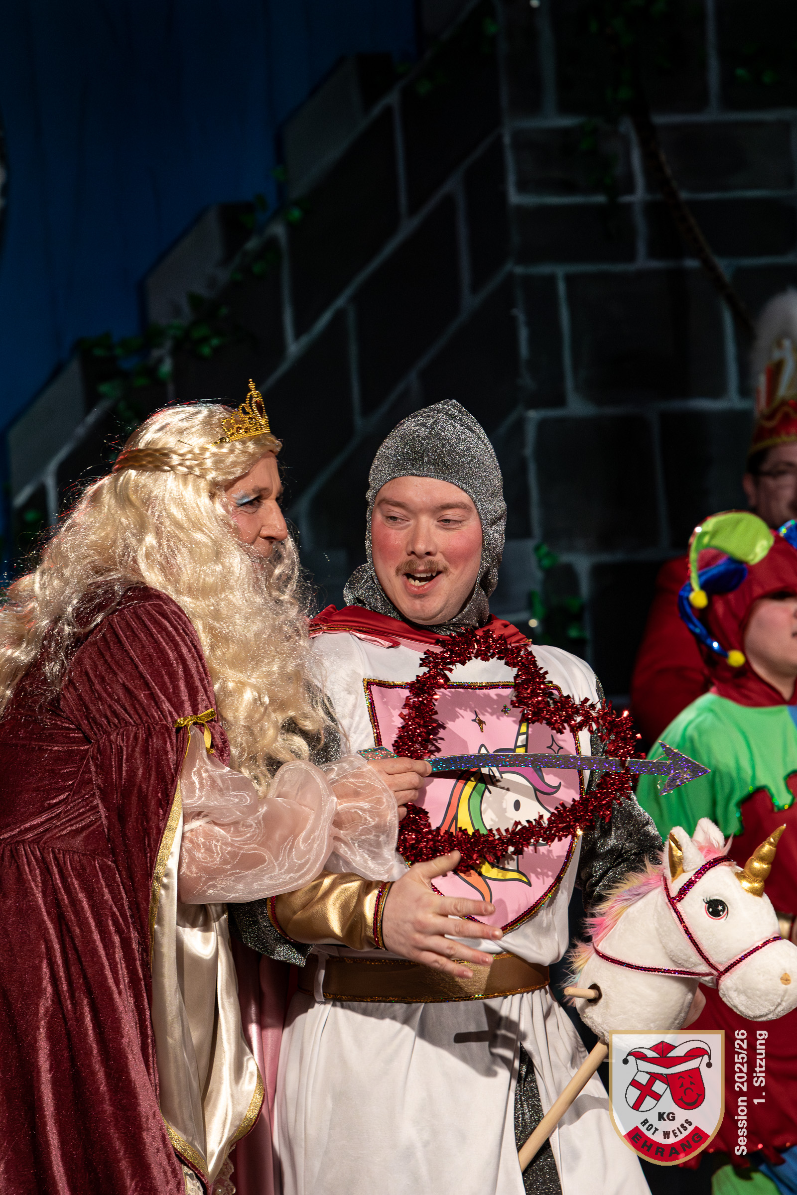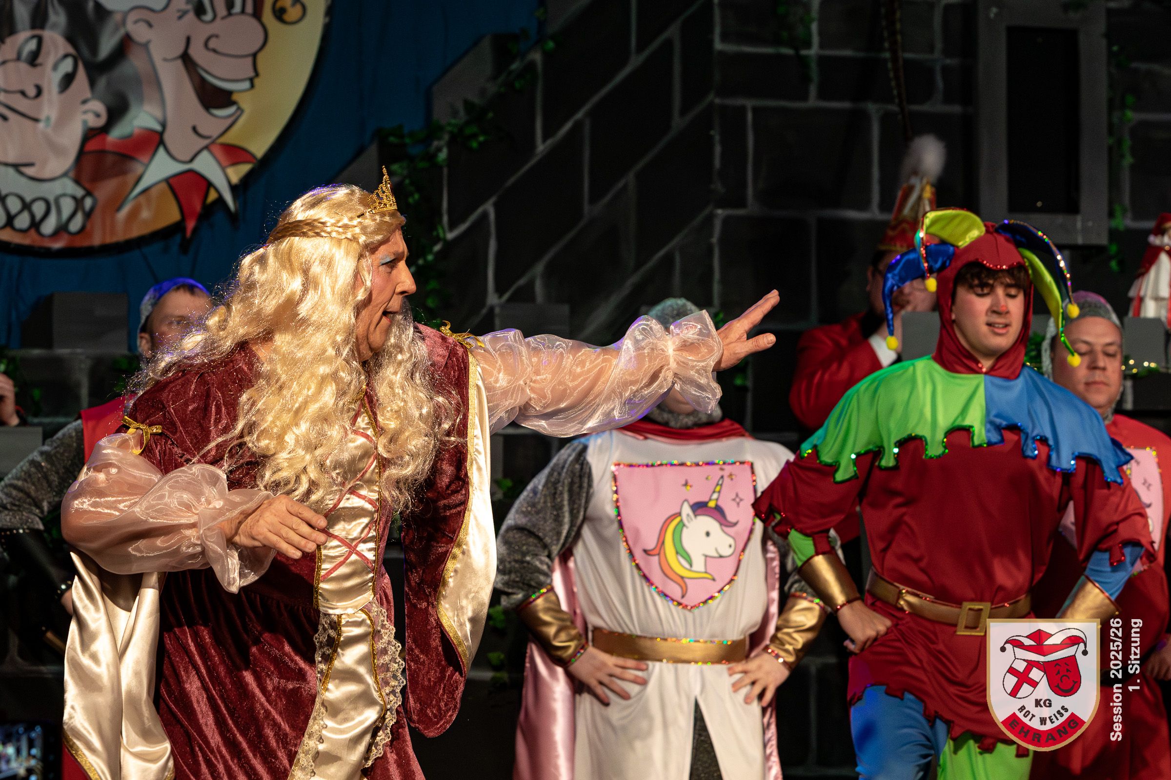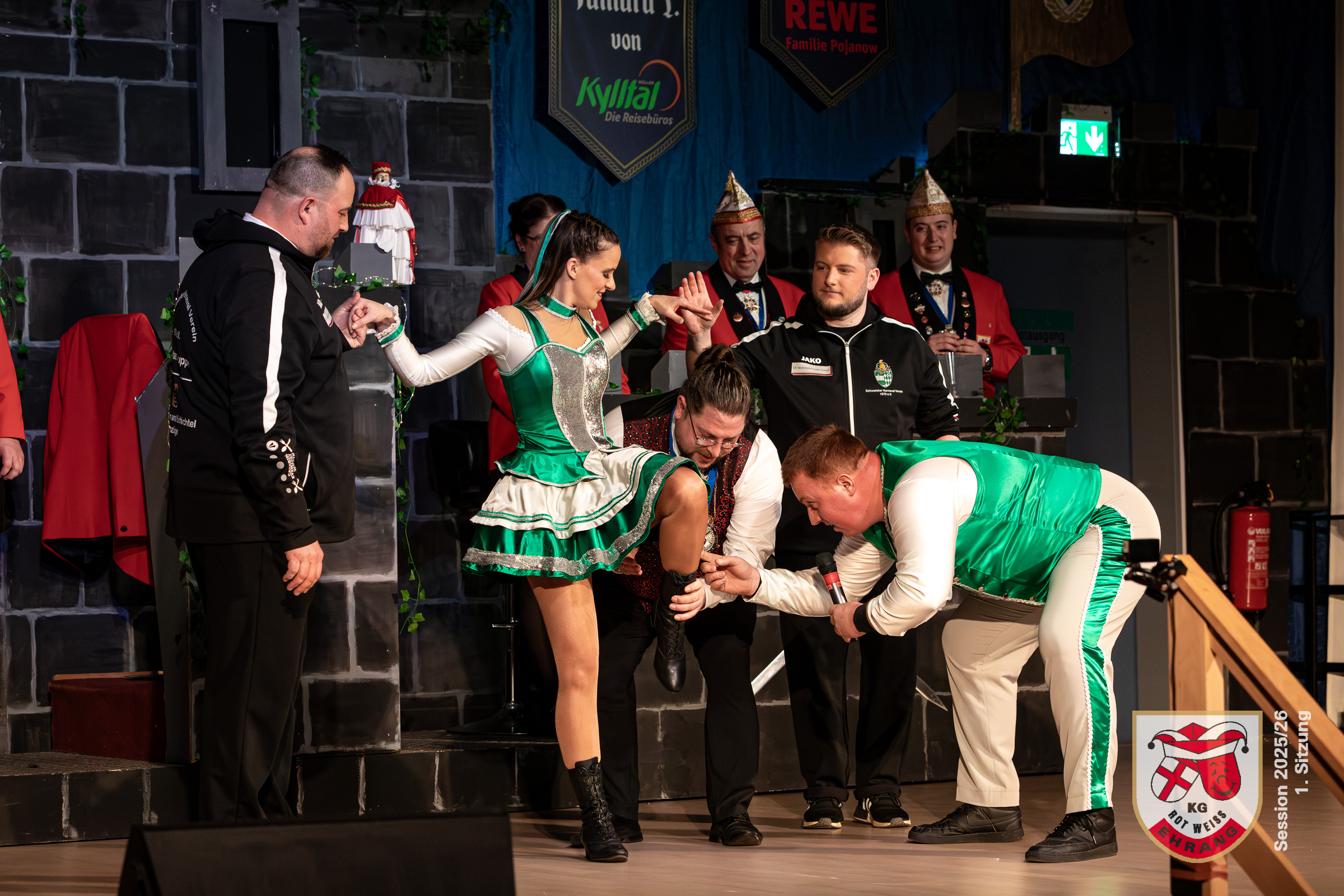 Keine Sitzung ohne »Die Roten Chaoten«. Das Männerballett der KG Rot-Weiß Ehrang hat sich getreu dem Sessionsmotto: »Ritter, Gaukler, Burgverwalter – Foasenicht im Mittelalter« ein ganz besonderes Ritterturnier ausgedacht. Edle Prinzessinnen, Hofnarren und tollkühne Ritter maßen sich im Lanzenstechen und Schwertkampf, schwangen das Bein und zeigten beeindruckende Hebefiguren.