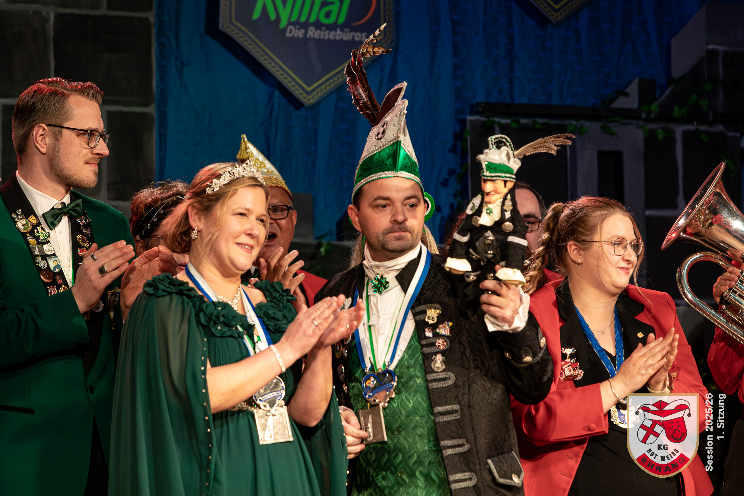 Als eine weitere Überraschung erwies sich der Besuch des Kordeler Prinzenpaars. Frank und Nadine Lamberty haben eine besondere Beziehung zu Ehrang und insbesondere zur KG Rot-Weiß, wo Nadine Lamberty jahrelang als Gardetänzerin und -trainerin aktiv war. Die Tochter des Prinzenpaares, Selina Lamberty, stand diesmal in Ihrer Funktion als rot-weiße Ministerin und Vorstandsmitglied heute neben Ihren Eltern auf der Bühne. Sichtlich bewegt betonte Prinz Frank bei seiner Ansprache daher, wie wichtig ihm dieser Auftritt in Ehrang ist.